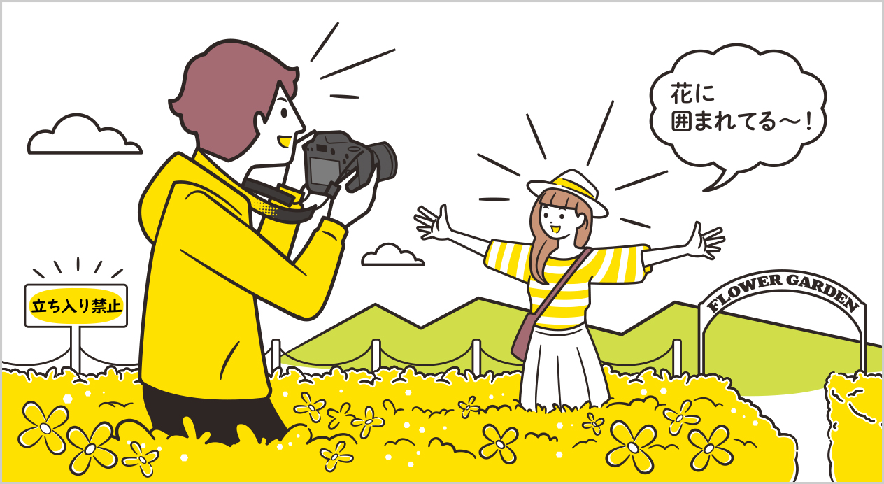 「いい写真を撮りたい」気持ちが高まると、ついつい忘れがちになる撮影マナー。でも、いい写真はいいマナーから。初心者の方からベテランの撮影者、地元や観光の方々も、みんなが気持ちよくその場の時間を共有できるよう、思いやりを持って楽しみましょう。
