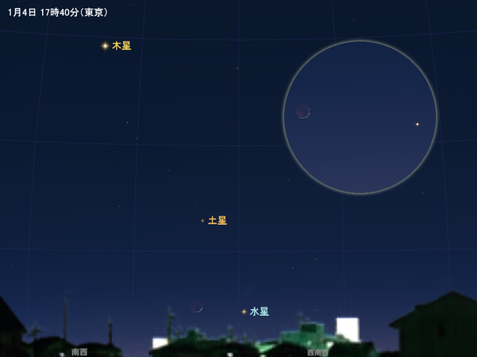 | 4日(火) | しぶんぎ座流星群の活動がピーク(「今月の星さがし」で解説) 夕方、細い月と水星が接近(「今月の星さがし」で解説) |