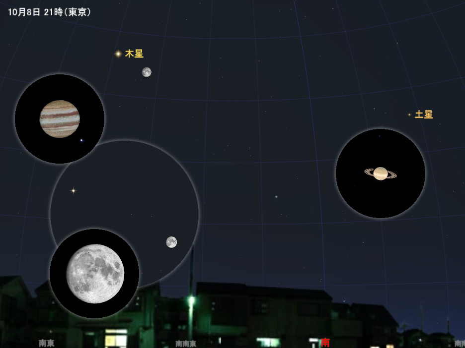 ほぼ一晩中見ることができ、とくに20時から21時ごろの見やすい時間帯に見やすい高さにあるので、観察に絶好のシーズンです。肉眼や双眼鏡では、8日から9日にかけて見られる明るい月との共演を眺めて楽しみましょう。