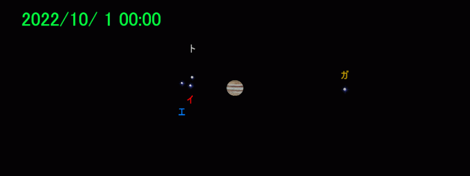 4つのうち一番内側のイオは2日弱、一番外側のカリストは17日ほどで木星を一周するので、数時間から数日で並び方が変わります。観察するたびごとに、お互いの位置関係や木星からの離れ具合が変化しているのがわかるでしょう。木星の左右に2個ずつ見えたり、片側に4つ集まっていたり、ときには衛星が木星の裏に回ったり木星の影に入ったりして3つ以下しか見えないこともあります。衛星が木星のすぐそばにあるときには、木星が明るいため衛星が見づらいこともありますが、反対にガニメデやカリストが木星から離れているときには双眼鏡でも見えるかもしれません。
