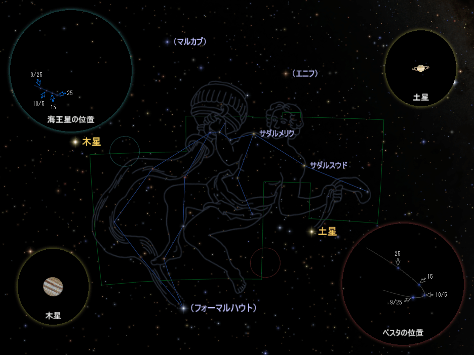 「みずがめ座」、海王星、ベスタはどれも見つけるのに少し苦労する天体ですが、それだけに見えたときの喜びも大きいものです。この秋、ぜひ観察に挑戦してみてはいかがでしょうか。