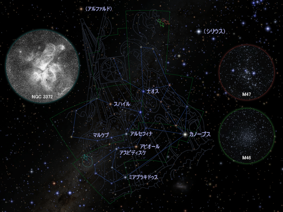 一方、オーストラリアなどでは頭の真上近くに見え、大きな船が天を渡っていくように見えます。この付近には天の川も流れているので、肉眼や双眼鏡で美しい眺めを楽しめます。南半球で星空を眺める機会があれば、ぜひご堪能ください。