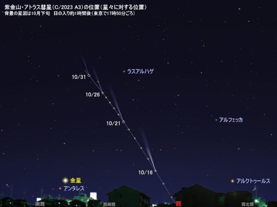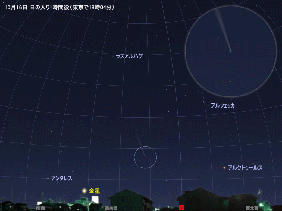 | 中旬以降 | 夕方~宵、西の空に紫金山・アトラス彗星が見える( 「今月の星さがし」 で解説) |