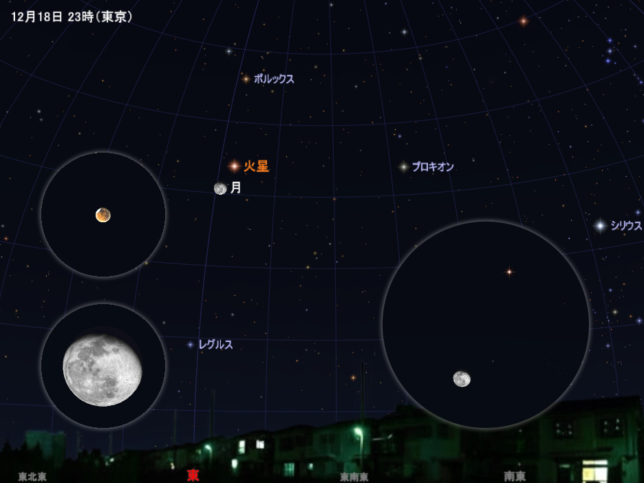 18日の宵から19日の明け方、満月過ぎの明るい月と接近します。