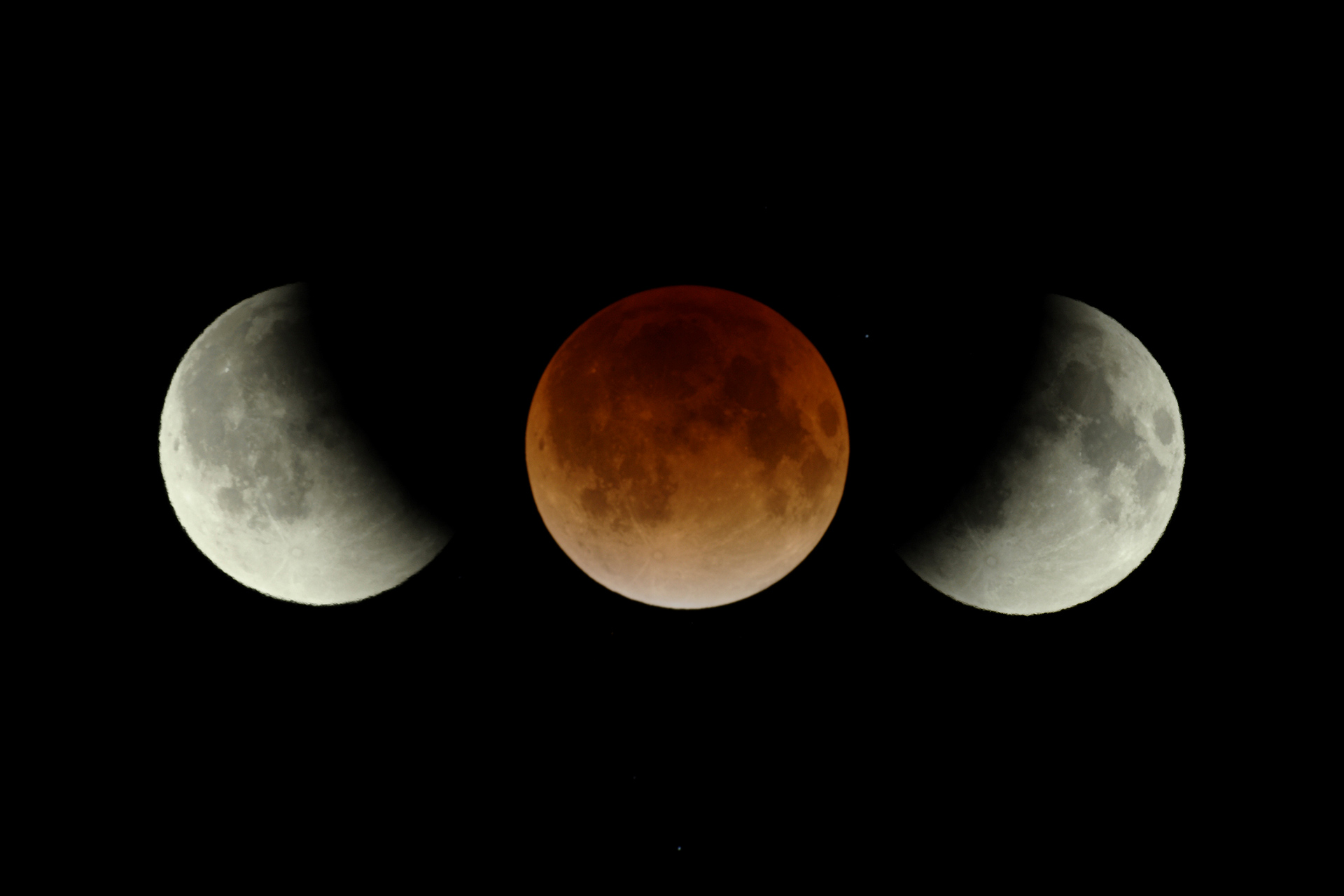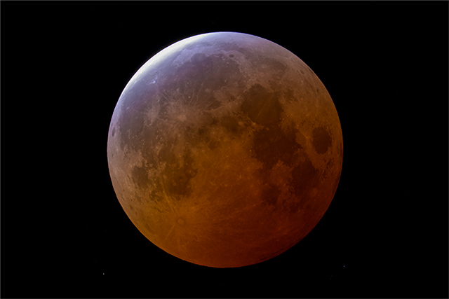 A. 皆既中の赤銅色の月を撮る