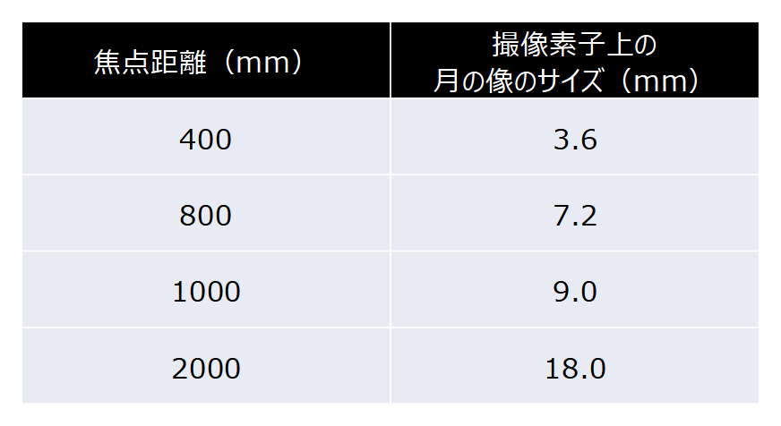 1. 焦点距離による月の大きさの違い