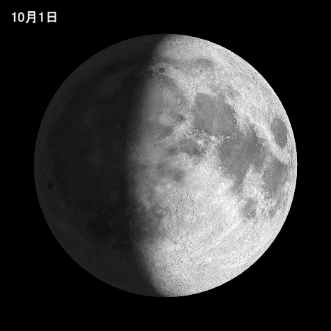 下弦(夜半に東の空から昇り、明け方に南の空に見える。下弦~新月は夜空が暗く、星が見やすくなります) |