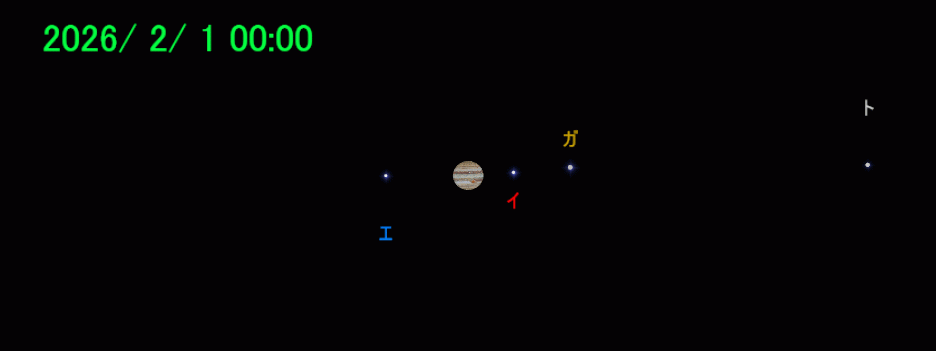 木星を天体望遠鏡で観察すると、数本の縞模様と、4つのガリレオ衛星(イオ、エウロパ、ガニメデ、カリスト)がわかります。衛星は木星の周りを公転するので、4つの並び方は数日でどんどん変わります。左右に2個ずつ見えたり、1つが木星の向こう側で見えなくなったりします。望遠鏡をお持ちでなければ、公開天文台や科学館に出かけてみましょう。