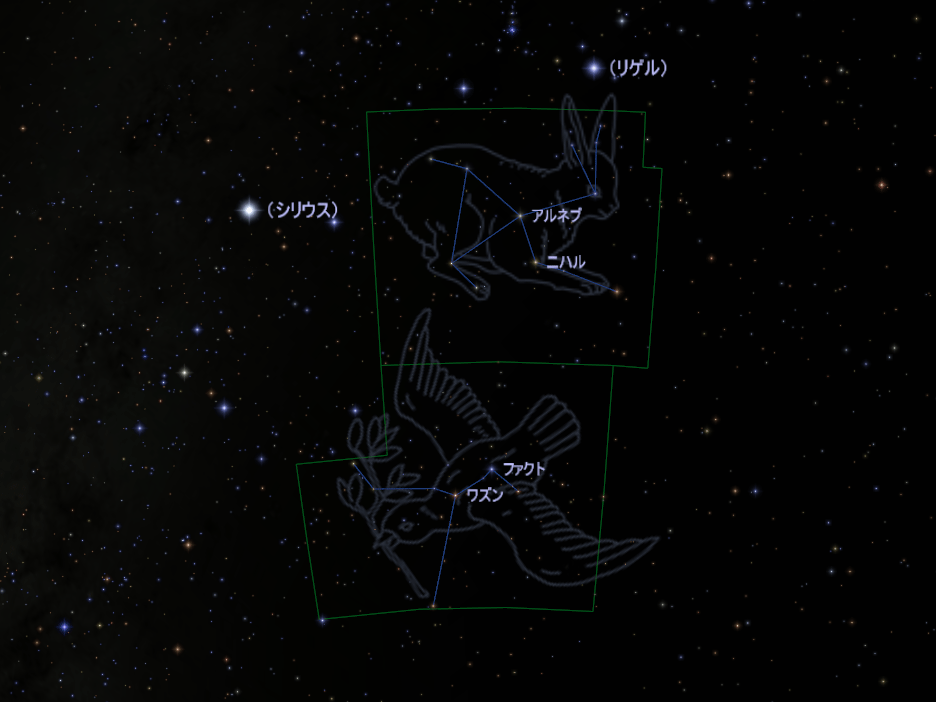 うさぎ座、はと座