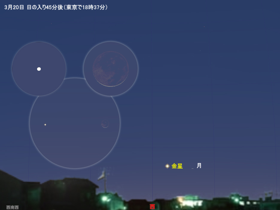 | 20日(金) | 春分 夕方、細い月と金星が接近(「今月の星さがし」で解説) |