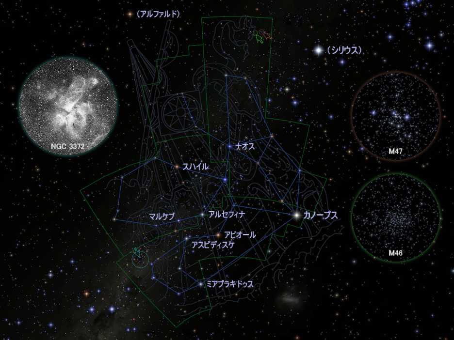 一方、オーストラリアなどでは空高く昇り、大きな船が天を渡っていくように見えます。この付近には天の川も流れているので、肉眼や双眼鏡で美しい眺めを楽しめます。南半球で星空を眺める機会があれば、ぜひご堪能ください。