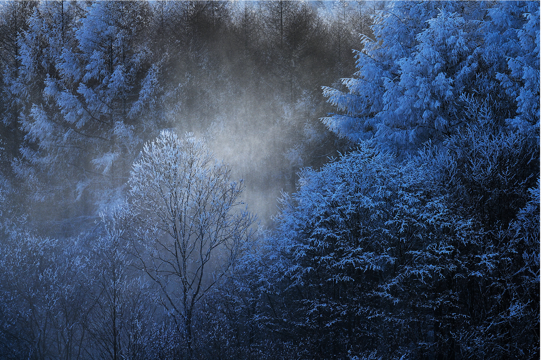 さて、いよいよ冬本番。悩める季節がやってきた。ここ数年、信州でダイヤモンドダストを狙っては撃沈し、流氷を期待して渡道しては待ちぼうけを喰らい、なんとか冬の絶景をものにしたいと、毎日毎晩、何種類もの天気予報やライブカメラを見比べては悩む日々が続いている。京都の自宅にいても現地の真っ暗なライブカメラに目を凝らし、これから信州までひとっ走りするかと迷ううちに、もう間に合わない時刻になり、それでも自分の判断が正しかったか確かめたくて、朝一番にライブカメラの映像をチェックしたりと、体力気力の無駄使いも甚だしい。現地にいる時も落ち着かない。町から目的地の山を見上げて、雲がかかっているとか、星が輝いているとかで、ある程度の霧氷予測がつくのだが、方向音痴の私は、見当違いの山を見上げて一喜一憂していたりする。究極は霧氷がつきそうな 山で車中泊をして、早朝、霧氷していなければ別の場所に移動するという、ものすごく効率は悪いが確実な手段に頼るが、とにかく霧氷がつかなければ、すべて無駄な努力に終わってしまう。