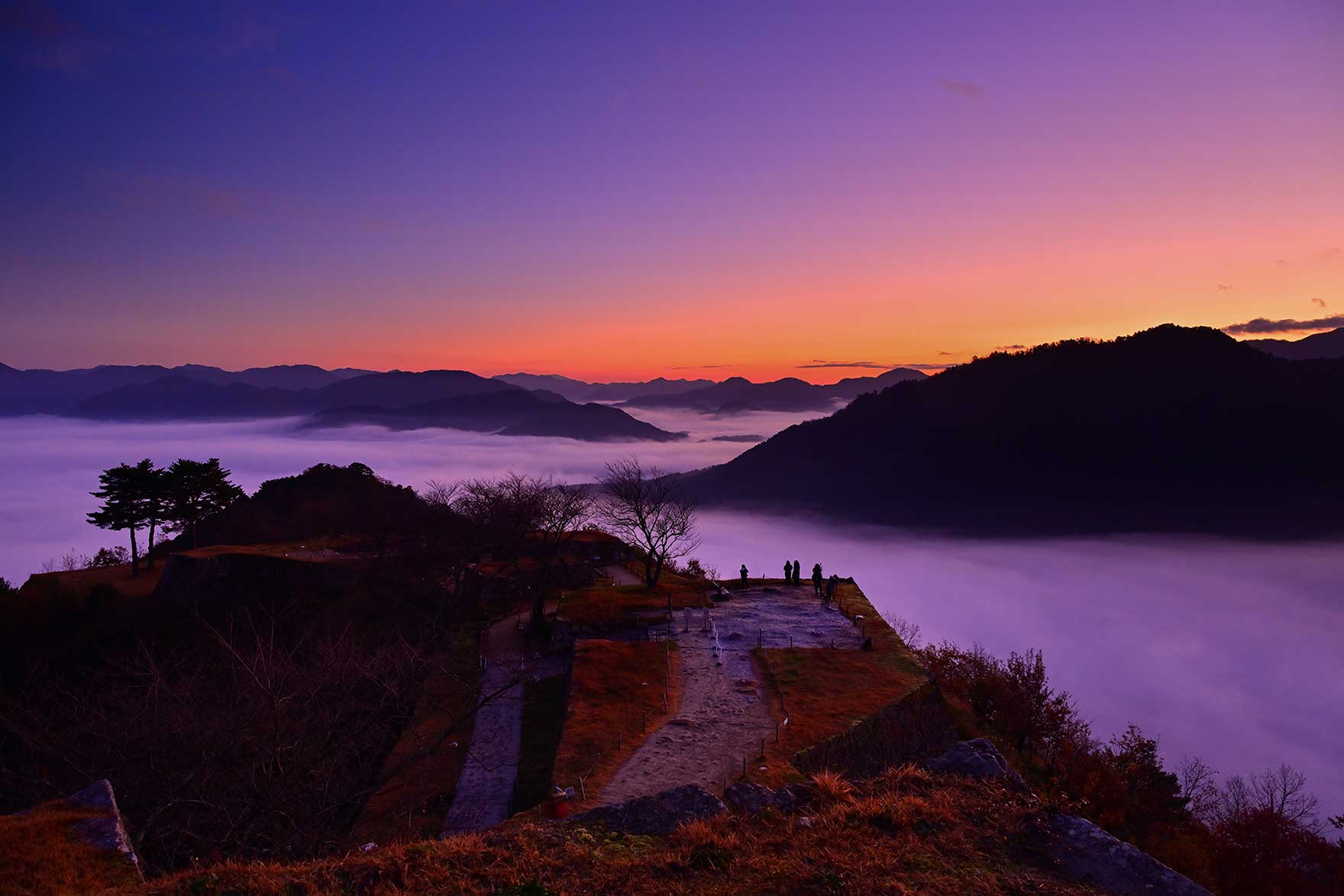 竹田城跡、立雲峡は、30〜40分の登り必須だが、9月〜11月は早朝の開門と同時に入場(有料)すれば、日の出に十分間に合うし、撮影場所は広く余裕がある。藤和峠はご来光と絡むが「お城感」は少ない。峠までは坂道なので凍結注意。冬場は冬用タイヤが無難。