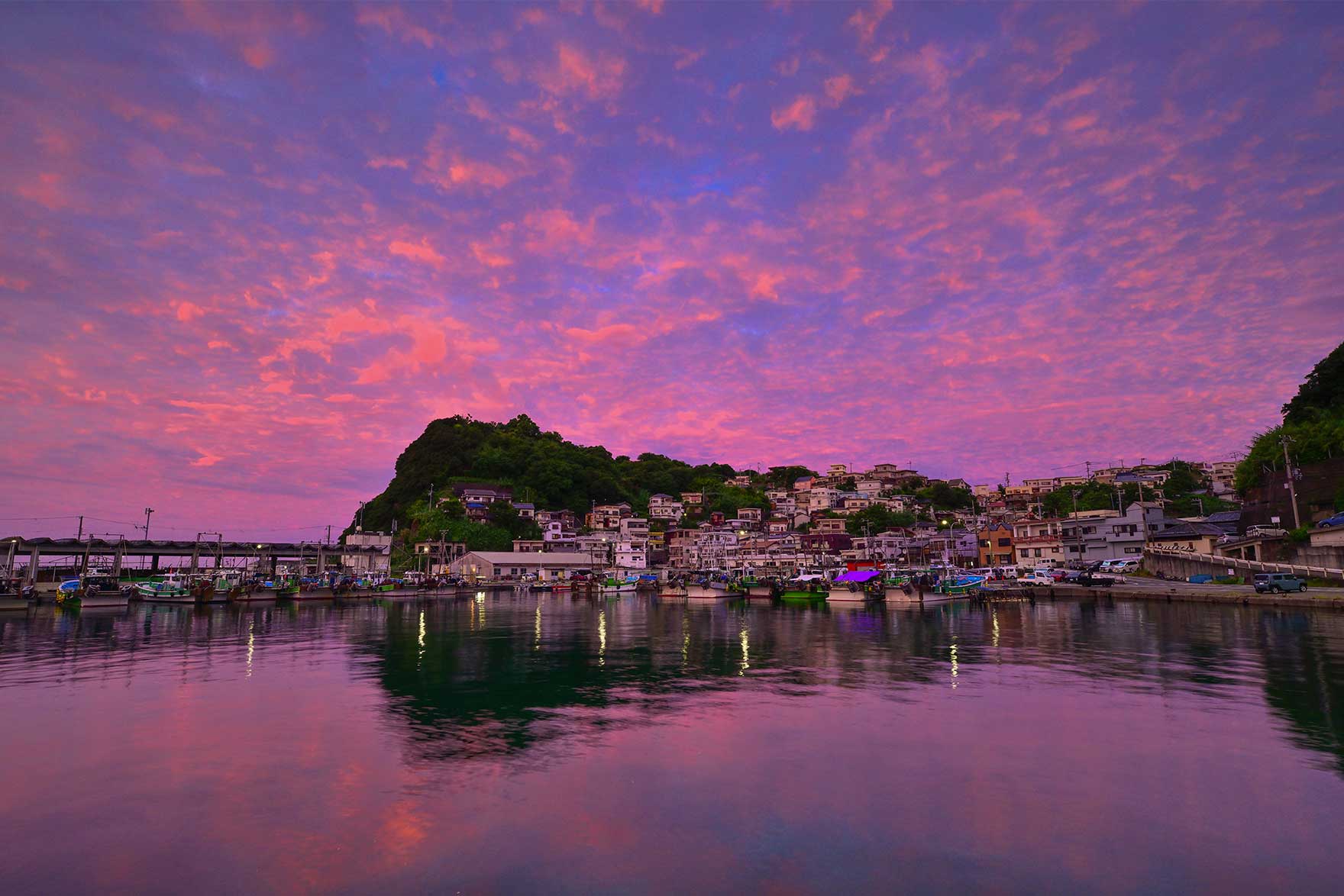 日本のアマルフィと、最近注目の雑賀崎。初秋頃、斜面に家が並ぶ港街に夕日が沈む。この時期、漁港付近の海沿いからだと、日没時刻40分ほど前には太陽が隠れるので、早めの到着が必須。市内へ向かって10キロ程にある名湯、高濃度天然炭酸泉「花山温泉 薬師の湯」もお勧め。