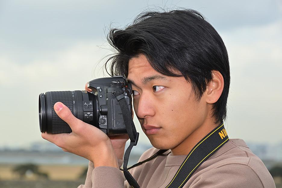 ポイントは、まっすぐに覗くことです。ファインダーから見える範囲が写真に写るので、斜めに覗いてしまうと見えている範囲と撮影した写真にずれが生じてしまいます。眉のあたりをファインダーの上部につけてファインダーと目をできるだけ近づけることで、まっすぐ覗くことができ、同時にカメラが安定します。