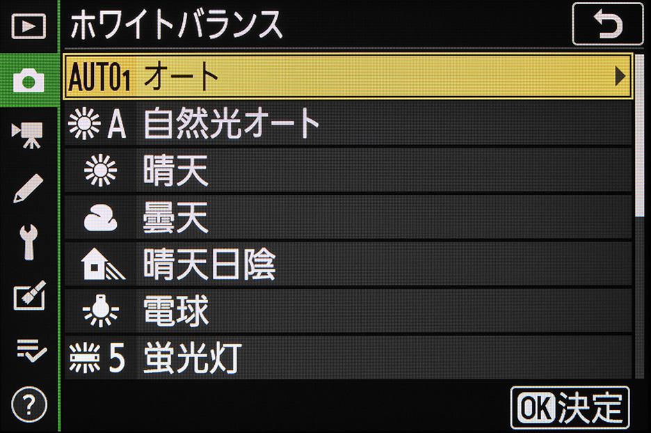 いろいろあって迷ってしまいますが、使い方としては普段は[オート]にしておき、思い通りの色にならなかったり意図的に色味を変えたりしたいときに別の設定に変更するのが基本です。設定によってはさらに細かく種類が選べるものもありますので、いろいろ試してみましょう。