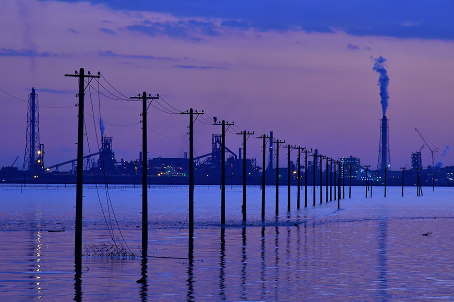 マジックアワーとは太陽が沈んだ直後から空が暗くなるまでの時間帯のことです。マジックアワーにホワイトバランスを変えて撮影すると、それぞれに印象の違う作品に仕上がるのでぜひ試してみてください。ここでは、ホワイトバランス[蛍光灯]から[白色蛍光灯][温白色蛍光灯][ナトリウム灯混合光][昼光色蛍光灯]で撮りくらべてみました。