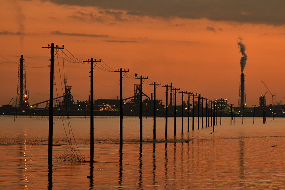 ホワイトバランス[蛍光灯]の[昼光色蛍光灯](約5000K)で撮影。今度は赤みを帯びた夕焼け空のイメージに。ホワイトバランスを[曇天]に設定することでもだいたい同じような効果が得られます。