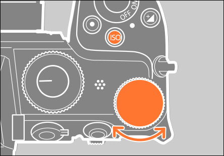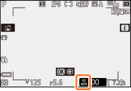 ISOボタンを押しながらサブコマンドダイヤルを回すと、ISO AUTO(感度自動制御する)とISO(感度自動制御しない)に切り換えることができます。