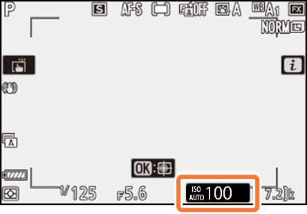 設定したISO感度は、撮影画面の下部に表示されます。