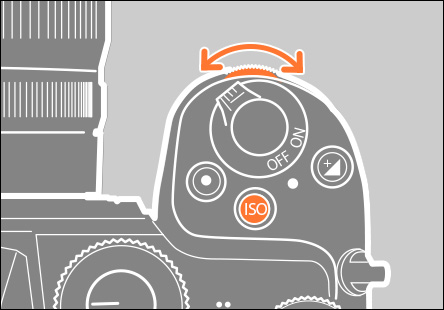 撮影中、ISOボタンを押しながらメインコマンドダイヤルを回すことで数値を変更することができます。