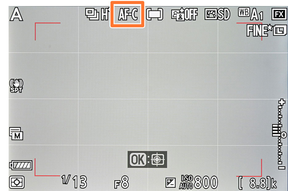 AF-Cはシャッターボタンを半押しした後でも被写体の動きに合わせてピントを追い続け、またピントが一時的に合わない状態になってもシャッターを切ることができますので「シャッターチャンスだったのにボタンが押せなかった」ということも防げます。