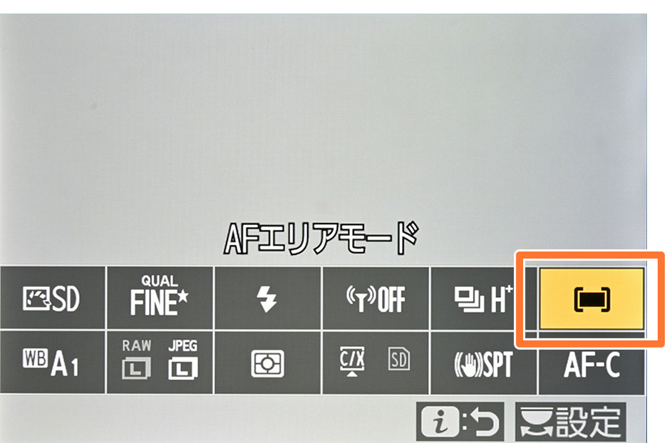 画像モニターでは枠で示した箇所に選んだAFエリアモードが表示されます