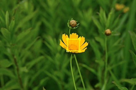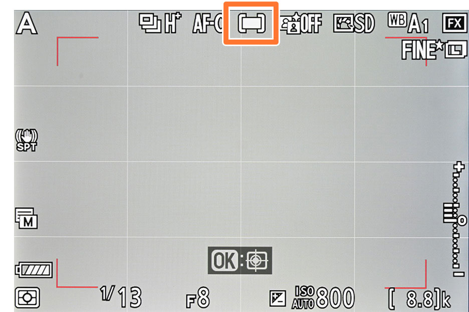 画像モニターでは枠で示した箇所に選んだフォーカスモードが表示されます