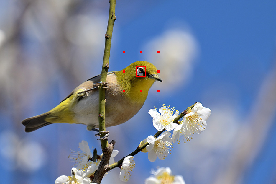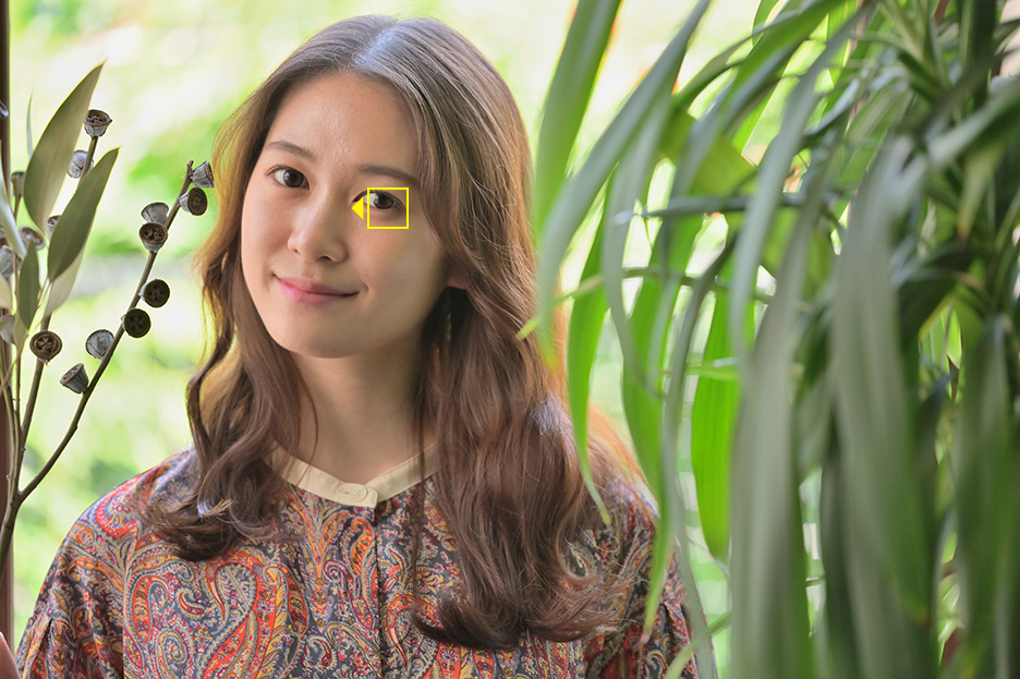 なお、瞳を認識できるときは左右どちらかの瞳に黄色のフォーカスポイントが表示されます。
