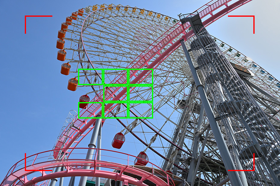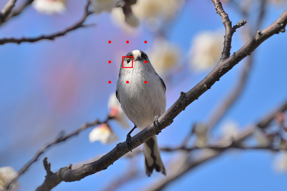 1点のフォーカスポイントでピントを合わせます。被写体がそこから一時的に外れても周辺にある8点のフォーカスポイントがカバーして被写体を追います。