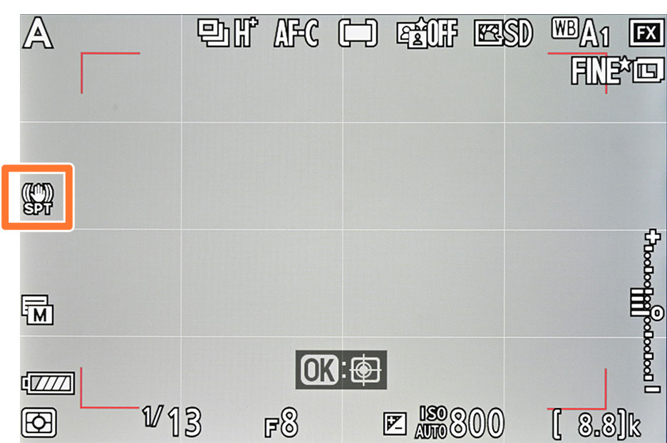 画像モニターでは枠で示した箇所に選んだ手ブレ補正が表示されます