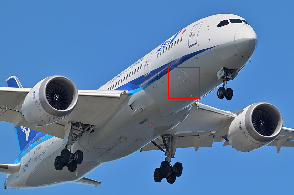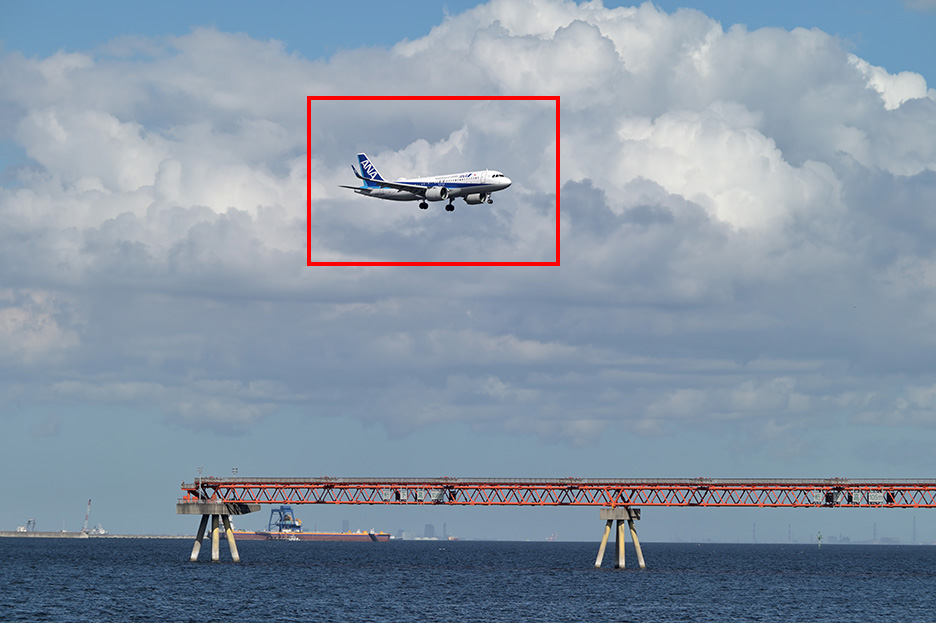 撮影場所が同じでも機体の大きさや飛行ルート、飛行速度は機体ごとに異なってきますが、進行方向などおおよそ動きの予測が立つ被写体です。[ワイドエリアAF]を使い、撮影イメージの構図に合わせ飛行機を置きたい位置にフォーカスポイントを合わせておきます。飛行機が飛んで来たらフォーカスロックし、常に機体がエリア内に入るようにカメラで飛行機を追い、イメージした位置まで飛行機が飛んできたところでシャッターボタンを押しこみ連写します。