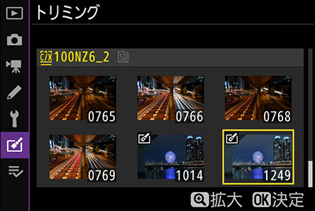 同じように[画像編集メニュー]→[トリミング]→画像選択画面から先ほど保存した“D-ライティング補正をかけた画像”を選択し、OKボタンを押します