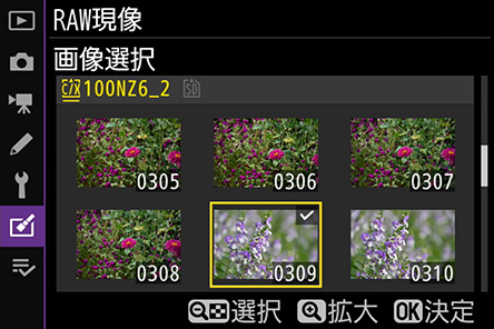 [画像編集メニュー]から[RAW現像]を選択。マルチセレクターの▶を押します