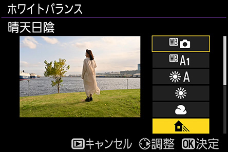 [ホワイトバランス]の編集画面から、変更したいモードを選択、OKボタンを押して設定を保存します