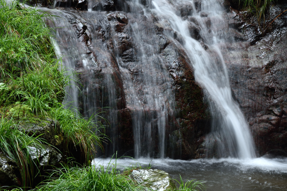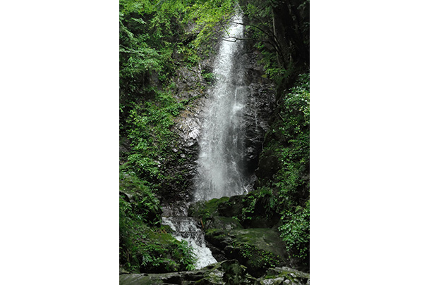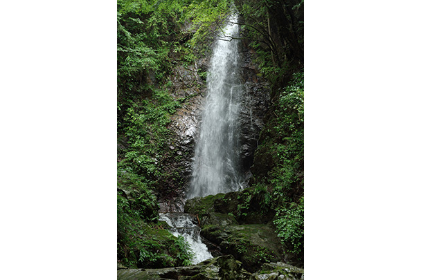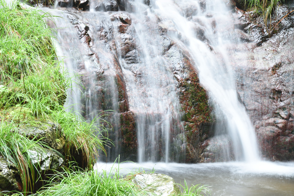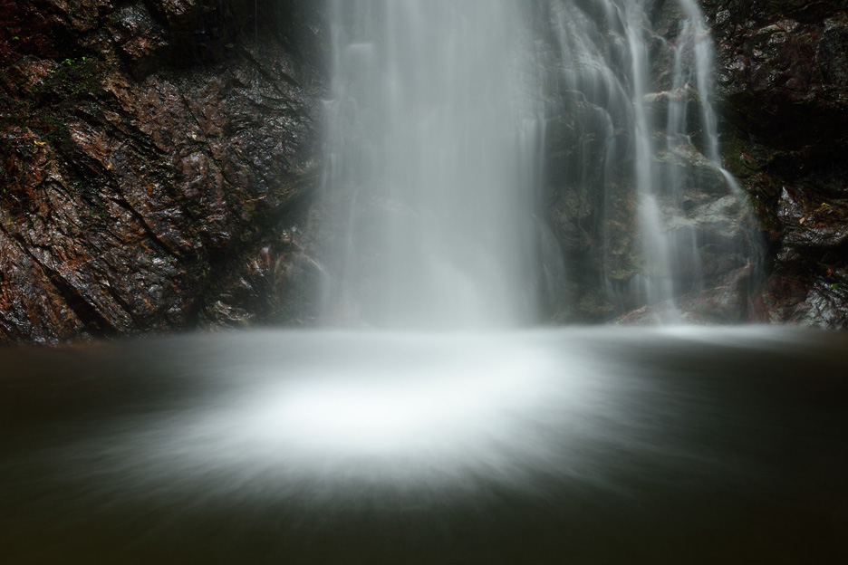 滝つぼをスローシャッターで捉えました。水の流れが線状になり、スポットライトのようにも見えます