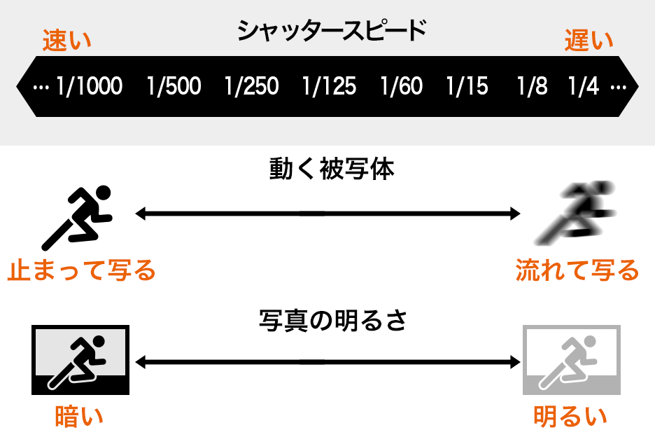 シャッタースピードと写真の関係は、以下の図ようになります。