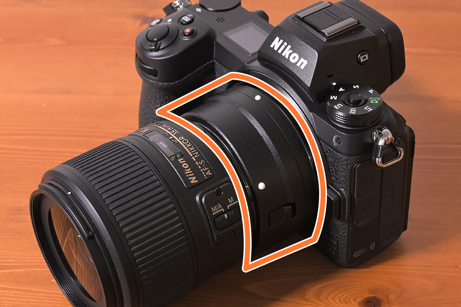 ZマウントのカメラZ 7IIでも、間にマウントアダプターを装着することでFマウントのレンズが使用できるようになりました
