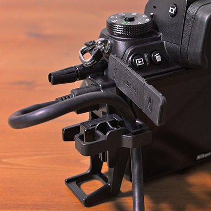 カメラにつないだHDMIケーブルやUSBケーブルが、接続中に不用意に外れることを防いでくれるのが「HDMI/USBケーブルクリップ」です。パソコンやテレビなどにカメラに接続した作業を行う場合は、あると便利です。