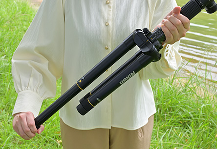 脚部は伸縮性で、収納時にはコンパクトに畳むことができます。