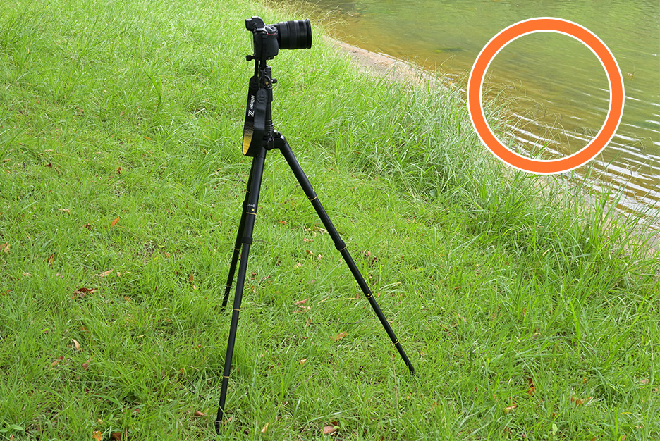 最後に、カメラをのぞきながら構図を検討し、必要があれば三脚を前後させながら最終的な位置決めをします。