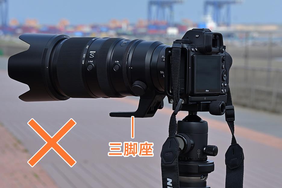- 超望遠レンズ撮影、三脚の装着方法
