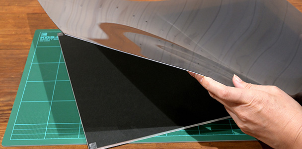 次に、夜景を反射させる「反射板」を準備します。反射板は、「1:黒く、2:光沢があり、3:手に持ったときしならない素材、厚みのあるもの」を準備しましょう。サイズはA4~A3程度の大きさがあると良いでしょう。鏡のように映るものでも代用できます。