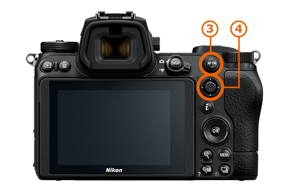 ③AF-ONボタン ④サブセレクター&サブセレクター中央