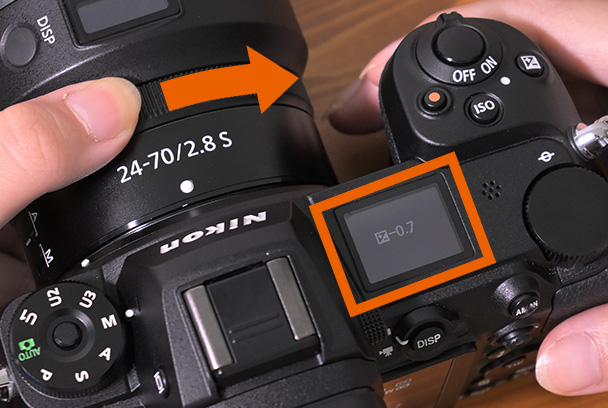 ここでは、「レンズのコントロールリング」を回すことで「露出補正」ができる設定を例に説明します。