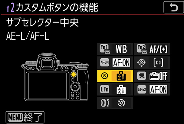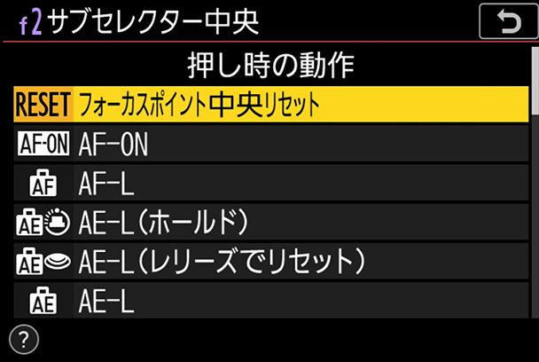 設定完了後、サブセレクターの中央部分を押すと、ワンプッシュでフォーカスポイントが中央に戻ります