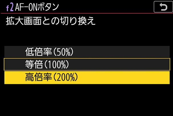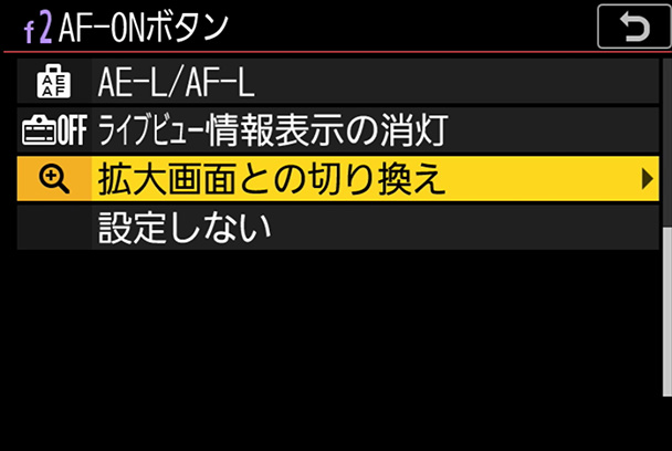 ボタン[AF-ON]+機能[拡大画面との切り換え]