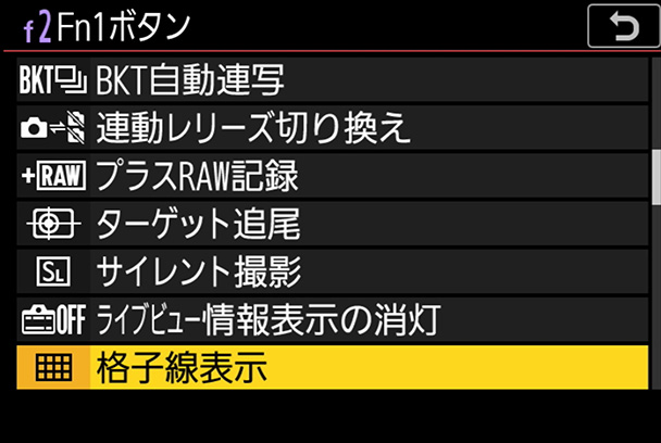「格子線表示」機能は撮影時、画面内に構図用格子線を表示することができます。特定のボタンに割り当てておけば、水平が取れているかを確認しながら撮影することができます。Fn1ボタンかFn2ボタンに設定しておくのがおすすめです。