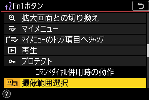 ボタン[Fn1(Fn2)]+機能[撮像範囲選択]