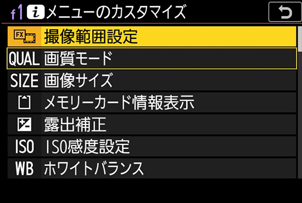 MENUボタンから[カスタムメニュー]→[f操作]→[f1